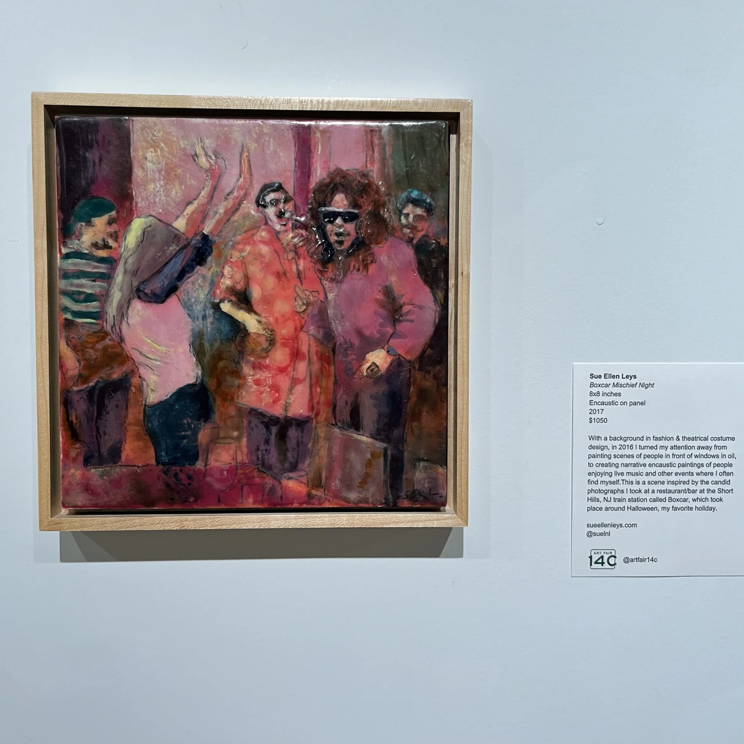 Pictured with "Coney Sideshow", 2017, 8"x8" Encaustic on panel