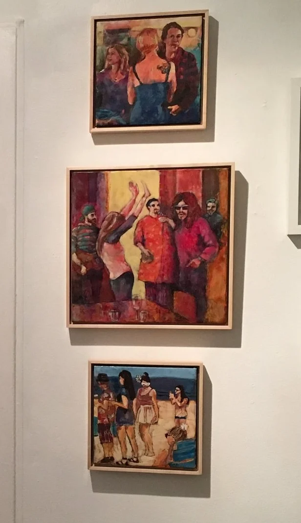 Right- "Silent Disco", 2018, 10"x8" encaustic on panel